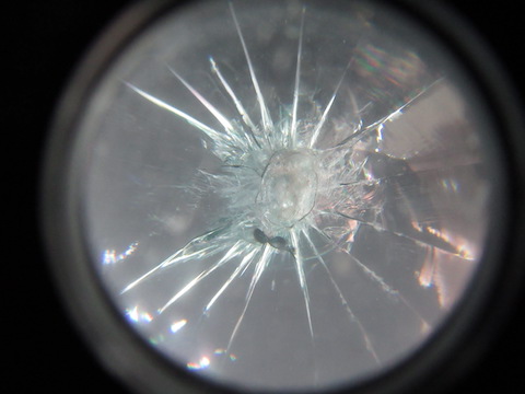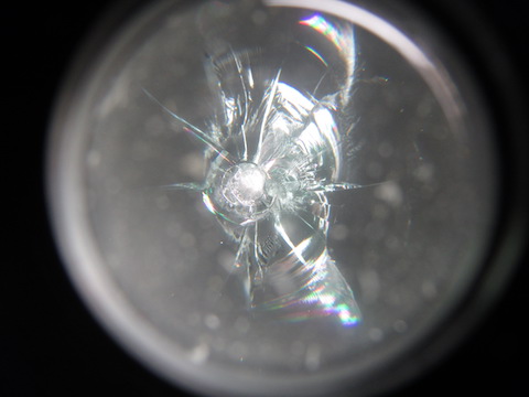チョットした力がかかるだけでもヒビが伸びそうな状態。