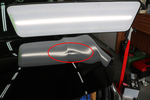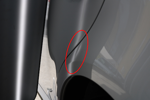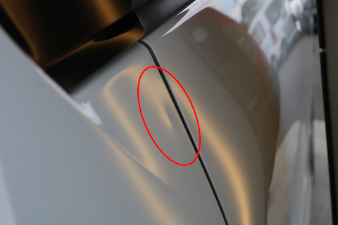 プレスラインが潰れるほど、大きく強くへこんでいます。