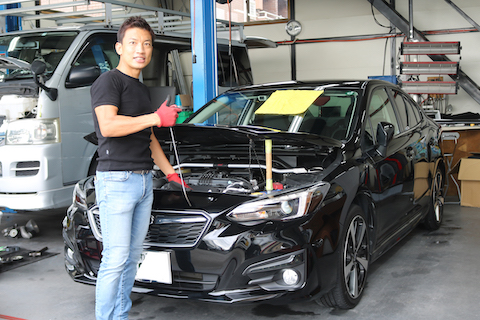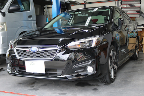 大阪市よりインプレッサ G4のお客様、ボンネット部分にヘコミが出来たとご来店。