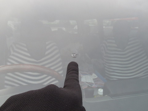 フロントガラス中心に飛び石の傷、