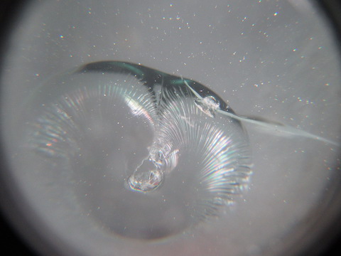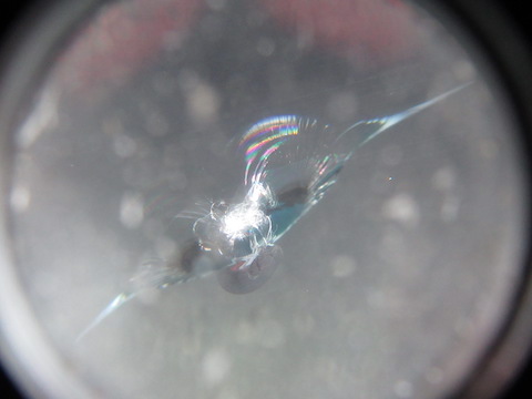 小さいけど、ヒビが入っています。