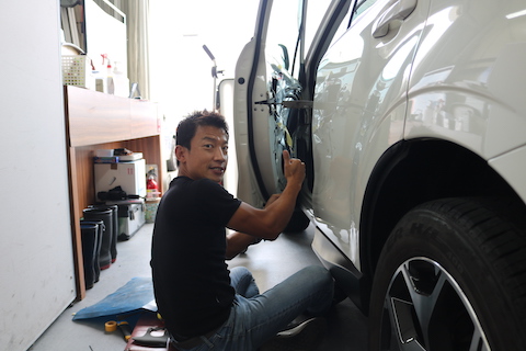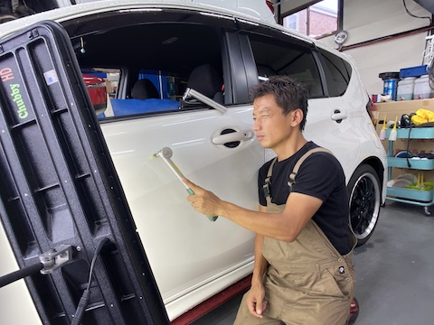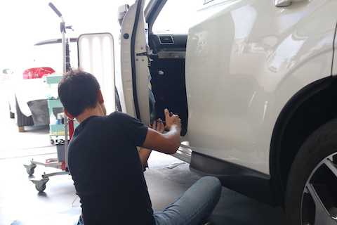 デントリペア工具が入らない場所も、内張を外してヘコミを直します!