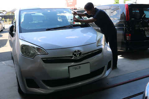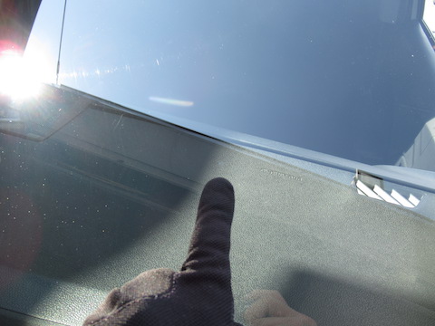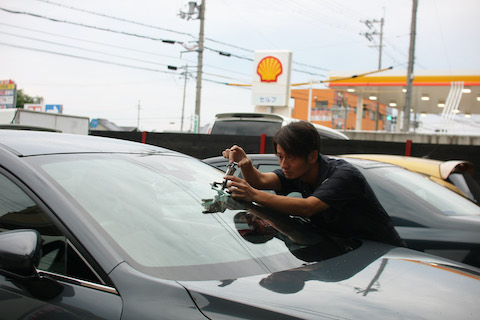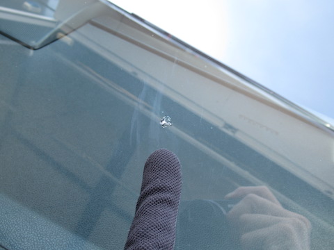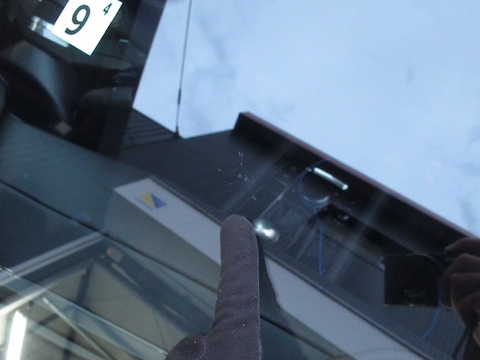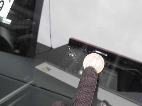 フロントガラスの端ギリギリの飛び石のヒビ割れ傷も修理!