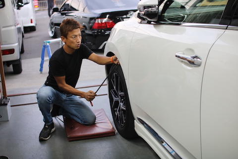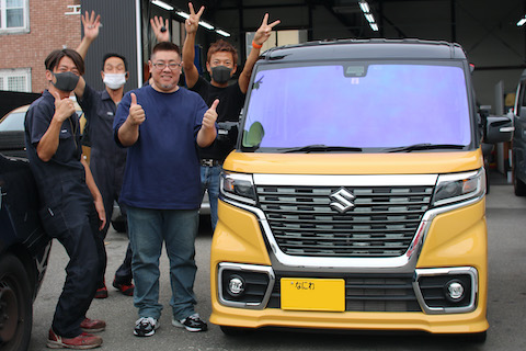 スズキ スペーシアのお客様、大事な愛車にヘコミができてしまったとご来店。