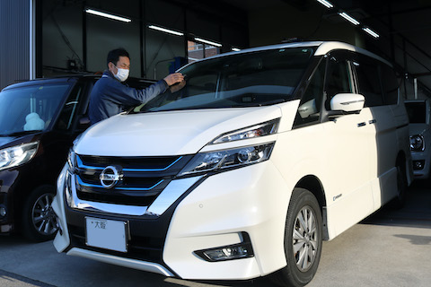 セレナのお客様、フロントガラスに傷ができたとご来店。