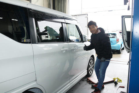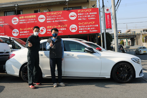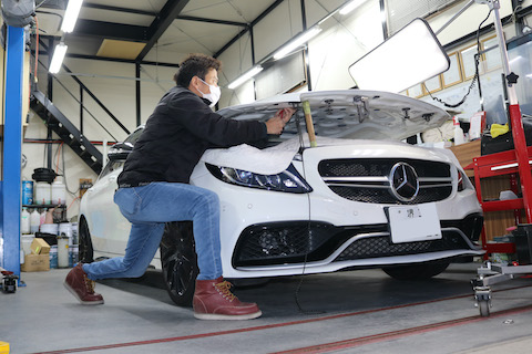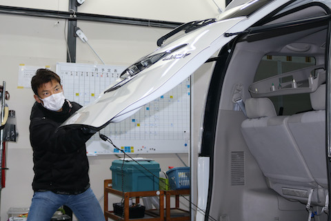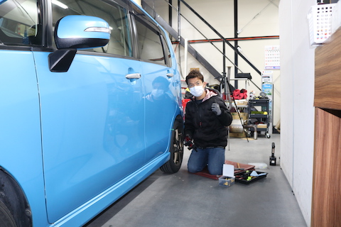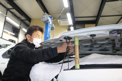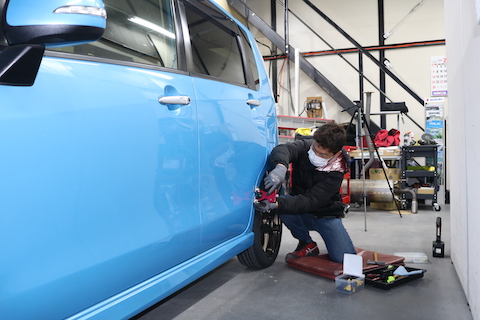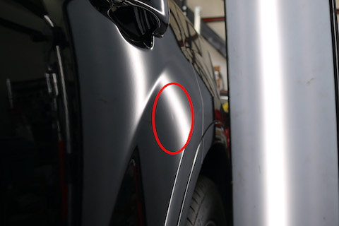 ムーブのお客様、大事な愛車にヘコミができたとご来店。