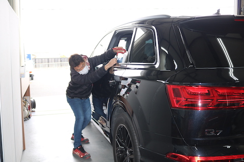 アウディ Q7のお客様、ドアパンチ被害を避ける為、