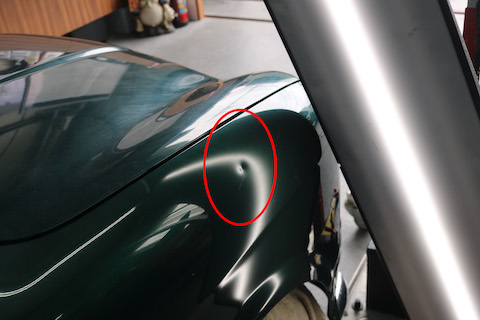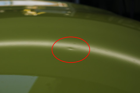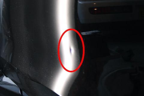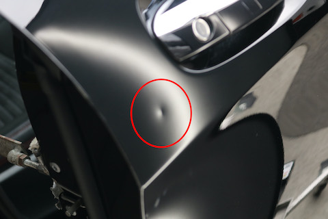 走行中に飛んできた小石などが当たってヘコミができることがあります。