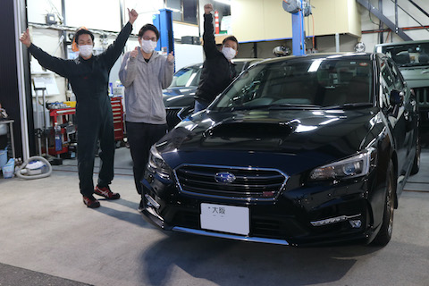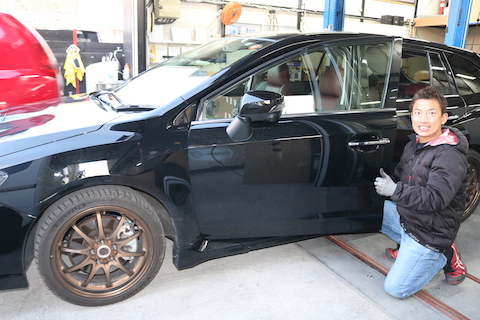 レヴォーグのお客様、ドアにヘコミが出来てしまったとご来店。
