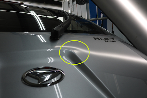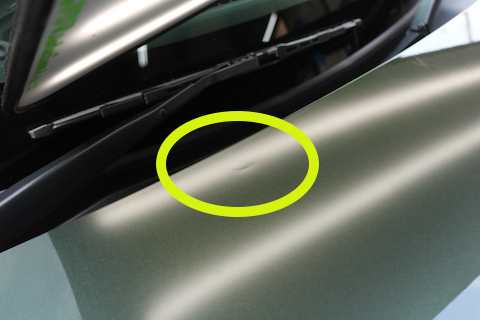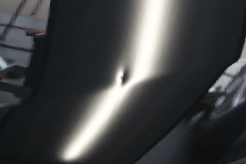 新車で納車したてで、高速走行中に飛んできた木でボンネットにヘコミ!