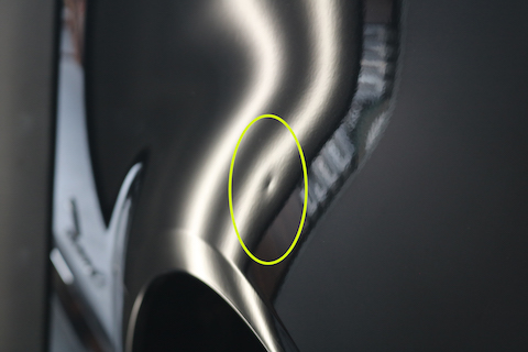 このヘコミの裏を特殊工具で突いて、鉄板の形状を整えれば、