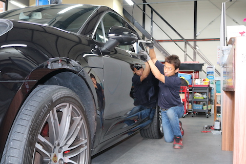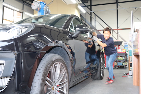 ポルシェのヘコミ修理、塗装しないで綺麗に直せます!