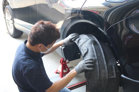 タイヤハウスから工具を入れてヘコミを押し出して、