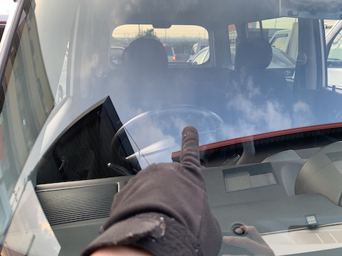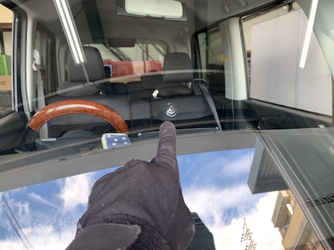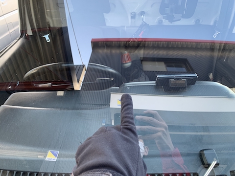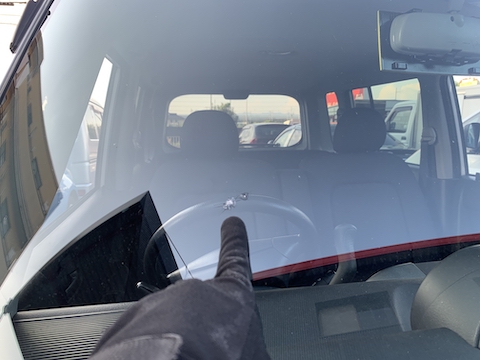 bBのお客様、フロントガラスに大きなひび割れができたとご来店。