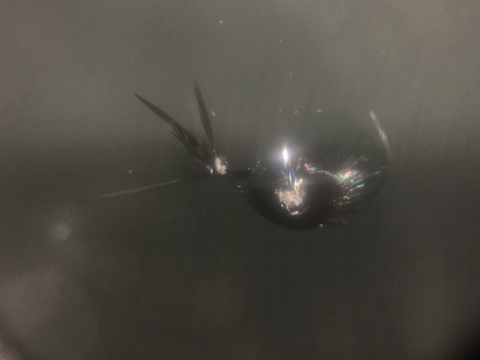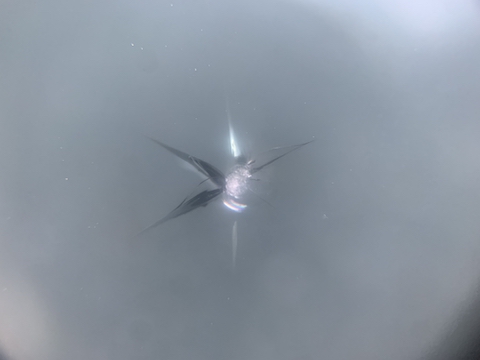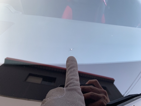 蹴飛ばされた石が飛んできて、フロントガラスにあたり、