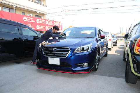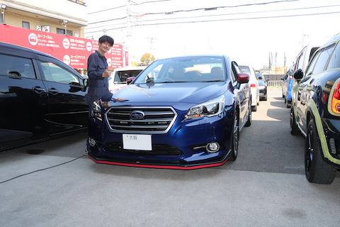 奈良県よりレヴォーグのお客様、運転席ドアにへこみが出来てしまったとご来店。