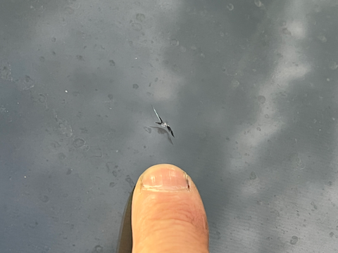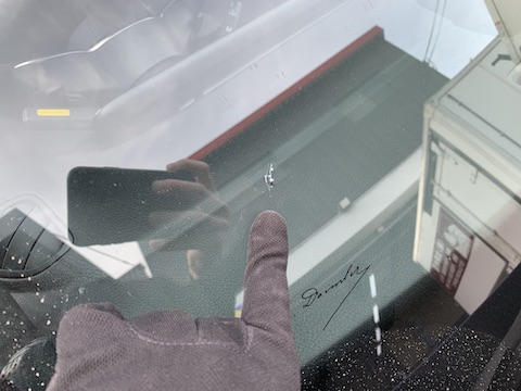 フロントガラスに飛び石が当たって傷がつくことがあります。