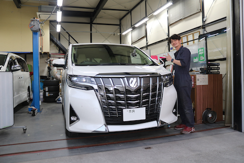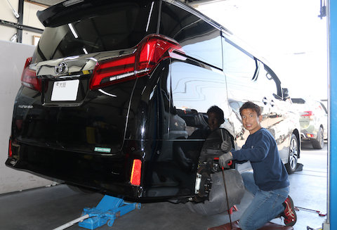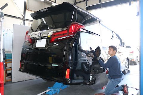 ヴェルファイアのお客様、左スライドドアに当て逃げされてしまったとご来店。