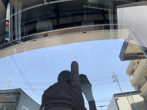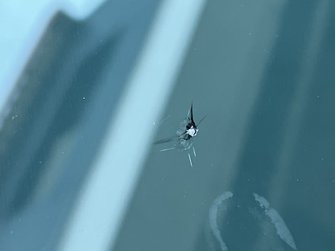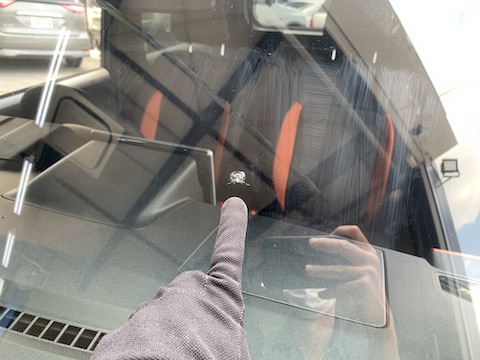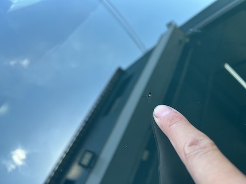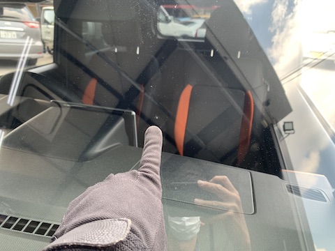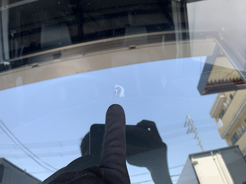 N-BOXのお客様、フロントガラスに飛び石が当たり