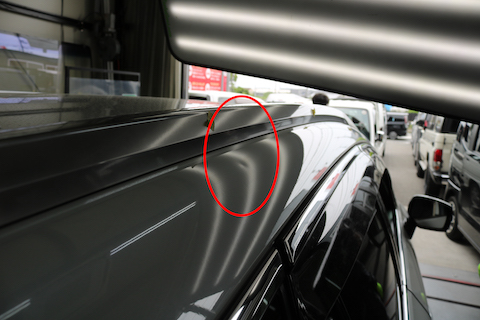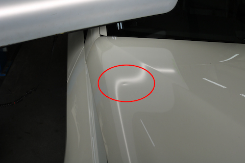 デントリペアで裏から押し出して直すという手法ができない場所。