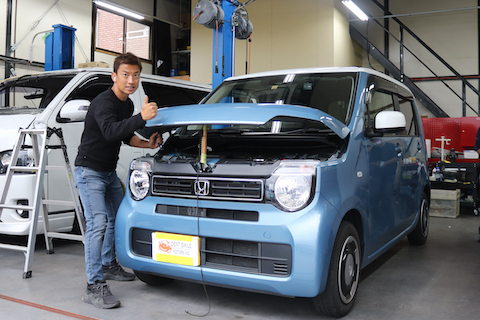 N-ONEのお客様、ボンネットに複数へこみができたとご相談。