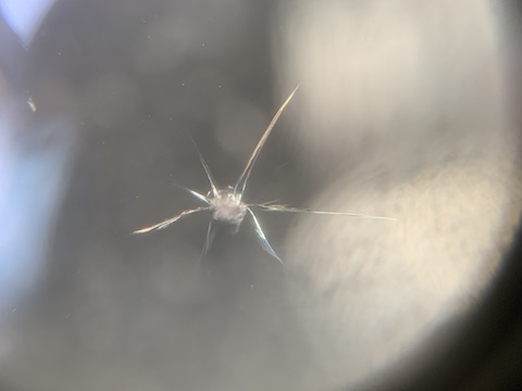 これを放置すればヒビが伸びて、フロントガラス交換となります。
