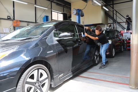 プリウスのドアにへこみ。デントリペアでスピード仕上げ!