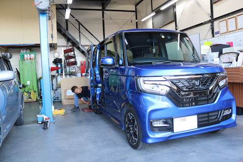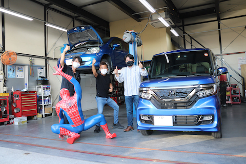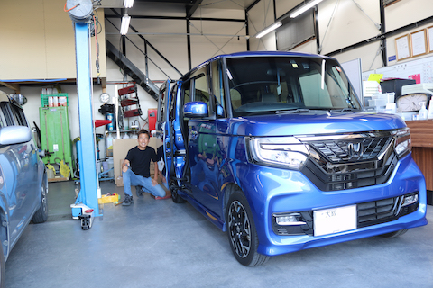 N-BOXのお客様、自宅の駐車場で自転車と接触してへこみ。