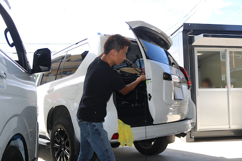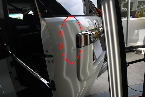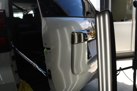 ランドクルーザーのリアゲートに大きなへこみができてしまったとご相談。