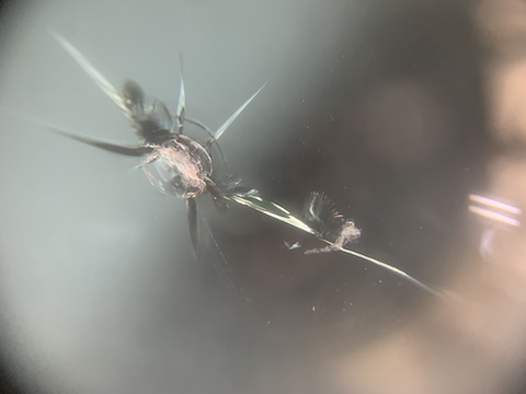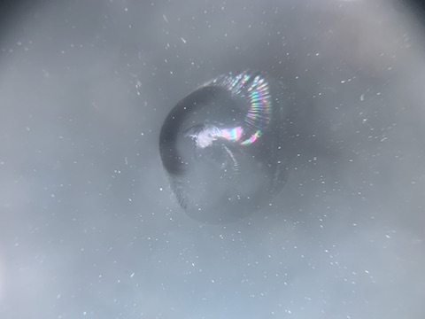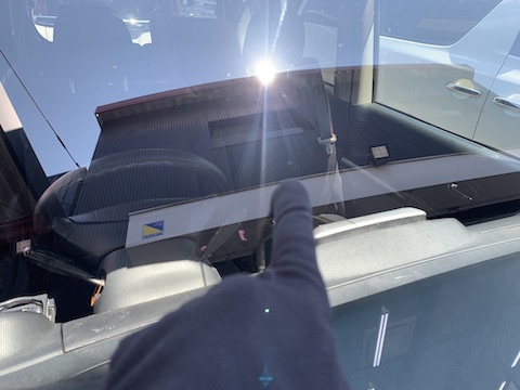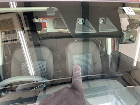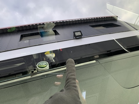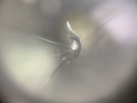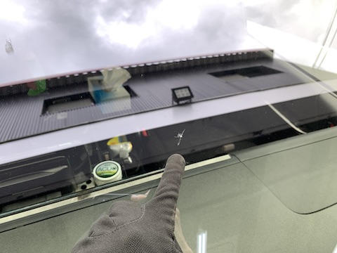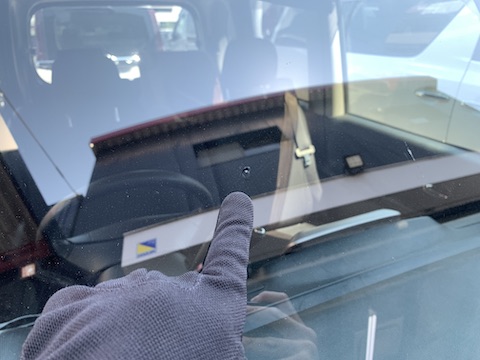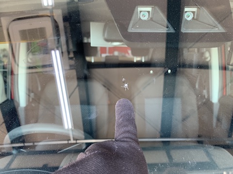 走行中に飛び石が当たり、フロントガラスが割れています。