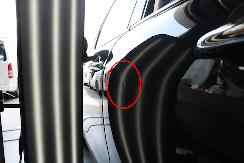 運転席ドアと右後ろたいや上あたりにへこみができてしまったとご相談。
