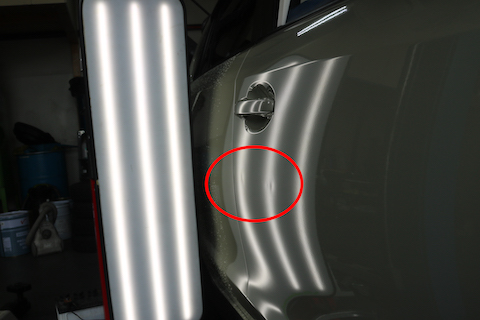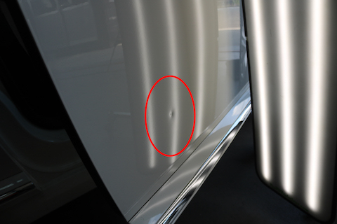 お客様もいつ出来たのかわからない、多分ドアパンチのへこみ。