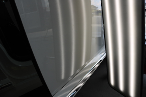 窓ガラスの隙間から工具を入れて、へこみの裏を押して成形し、