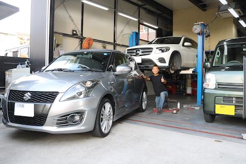 スイフトのお客様、左リアクォーター部分にへこみが出来てしまったとご相談。