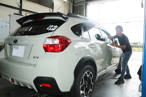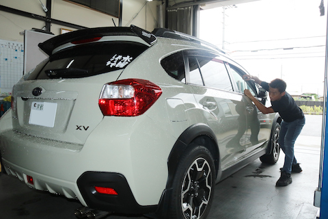 XVのお客様、運転席ドアに3つ並んだへこみがあるとご相談。