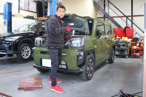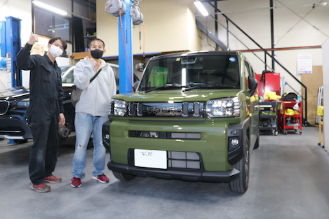 タフトのお客様、フロントタイヤ上あたりにへこみが出来てしまったとご相談。