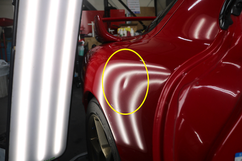 RX-7のへこみ、オリジナル塗装を守って修理