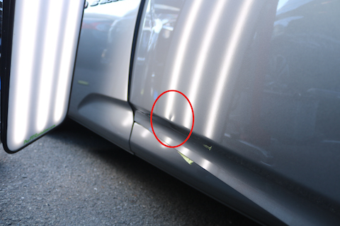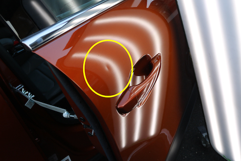 続いて、助手席ドアのへこみ。