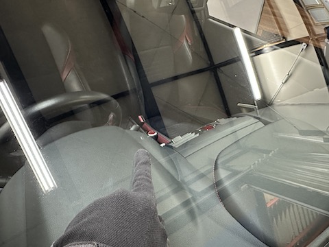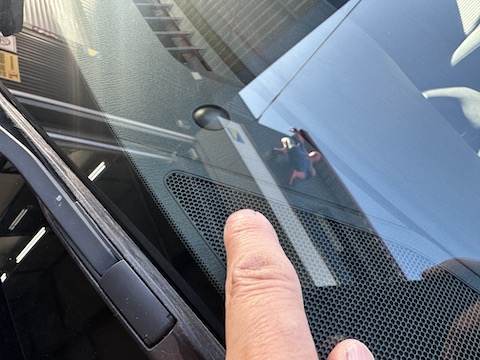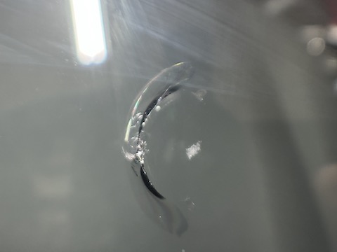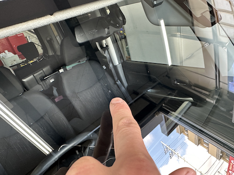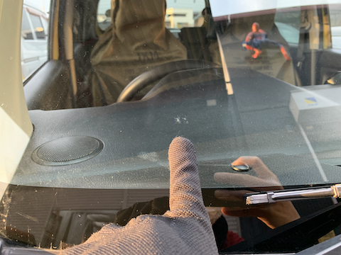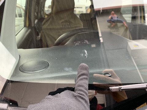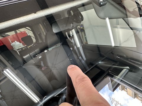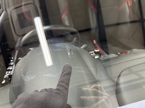 運転席前に大きなひび割れ傷。
