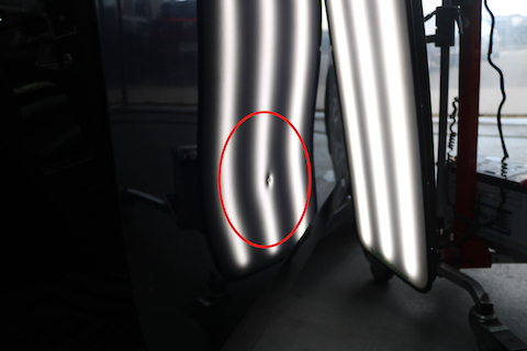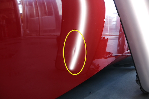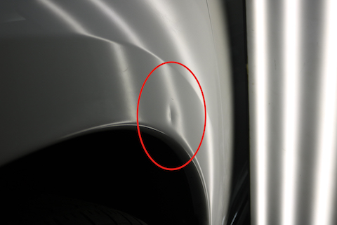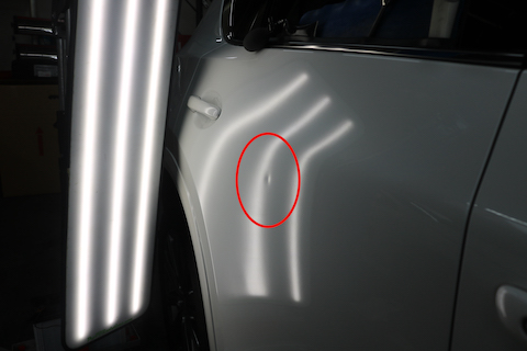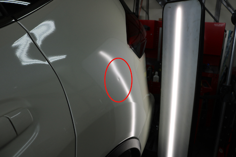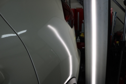 リアクォーター部分のパネルにエクボのへこみ。