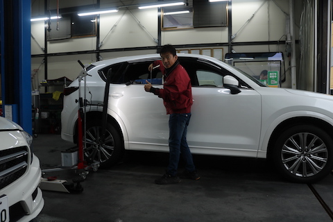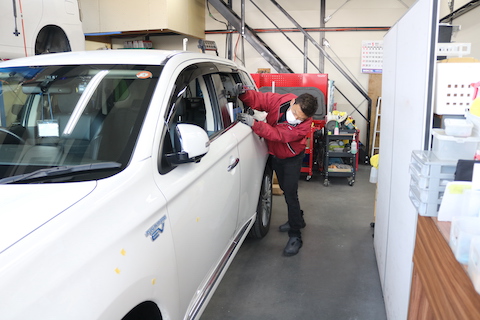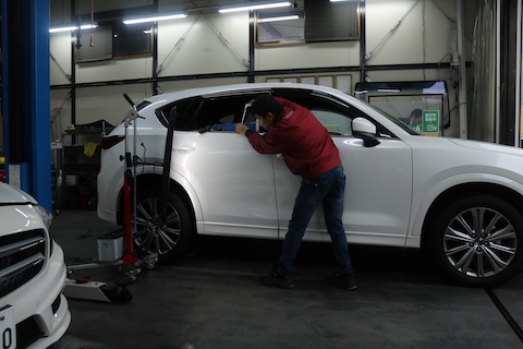 ここは窓ガラスから工具を挿入してへこみを押し出し、