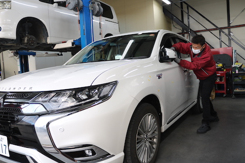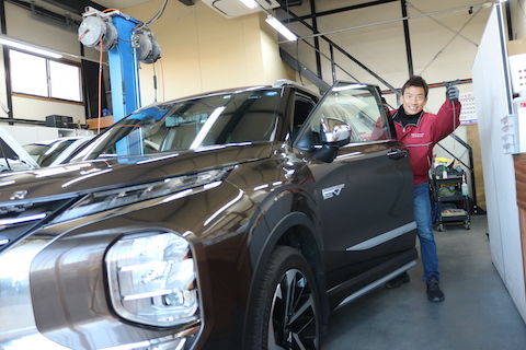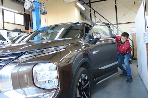 三菱アウトランダーのお客様、へこみ数カ所あるとご相談。