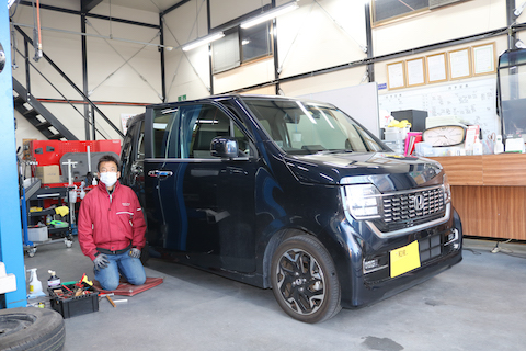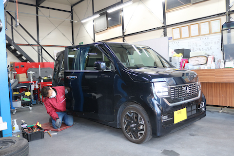 N-ワゴンのお客様、ドアにへこみができてしまったとご相談。