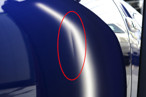 助手席ドアのプレスラインにへこみができてしまった場合も、