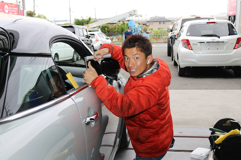 ここはドアミラーを外して、取り付け部から工具を挿入。