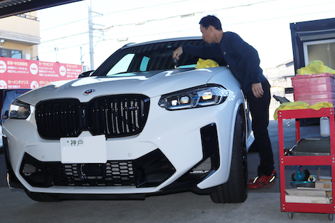 新型X3Mのお客様、フロントガラスにひび割れができたので、