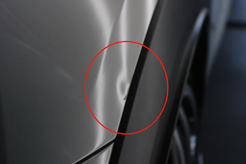 フェンダーアーチ部分にへこみ、プレスラインも潰れていました。