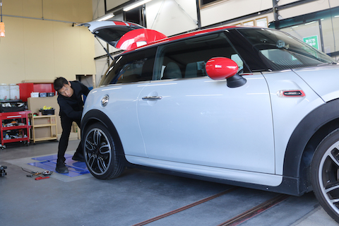 ミニのクォーター部分のへこみを塗装しないデントリペアで修理!