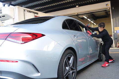 CLAのドアに気になるへこみ、即時に修理可能なデントリペア