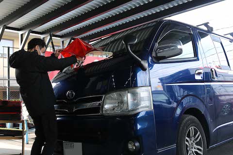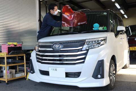 フロントガラスひび割れ修理、大きいサイズも対応!